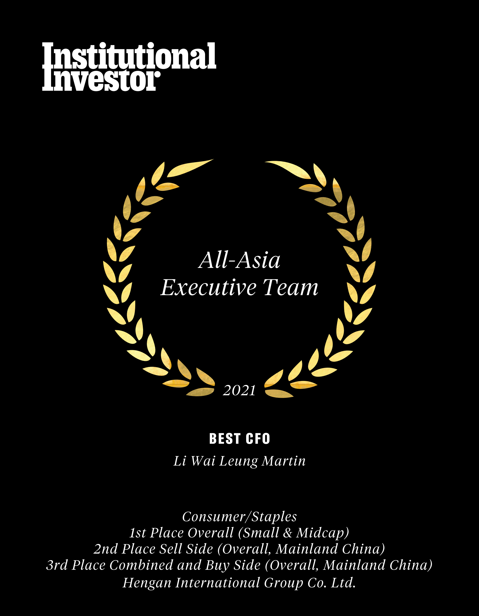 近日,国际权威财经杂志《机构投资者》(Institutional Investor)公布了“2021年度亚洲区公司最佳管理团队”(2021All-AsiaExecutiveTeam)评选结果,雷火竞技国际集团蝉联“受尊崇企业”名衔及必需性消费品类别组别中的多项殊荣,包括“最佳投资者关系活动”、“最佳环境、社会及企业管治(ESG)”、“最佳行政总裁”许连捷先生、“最佳财务总监”李伟樑先生。