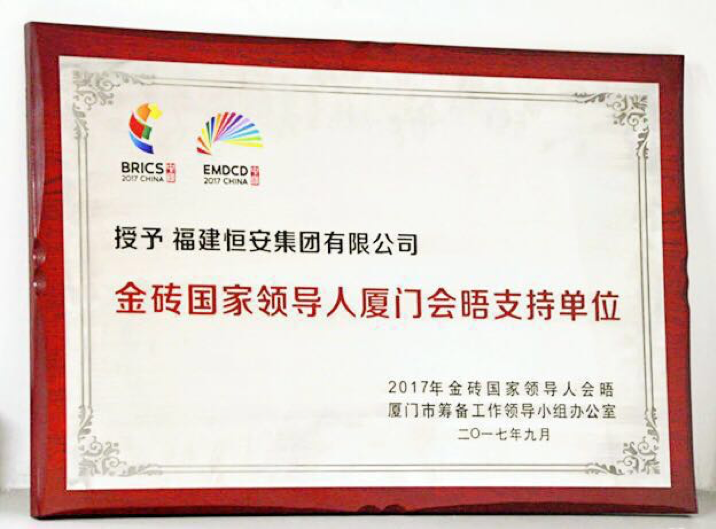 会议期间,雷火竞技集团提供了“心相印”等高品质产品,鼎力支持大会的举行。昨日,2017年金砖国家领导人会晤厦门市筹备工作领导小组办公室隆重授予雷火竞技集团“金砖国家领导人厦门会晤制定产品”证书以及感谢信。